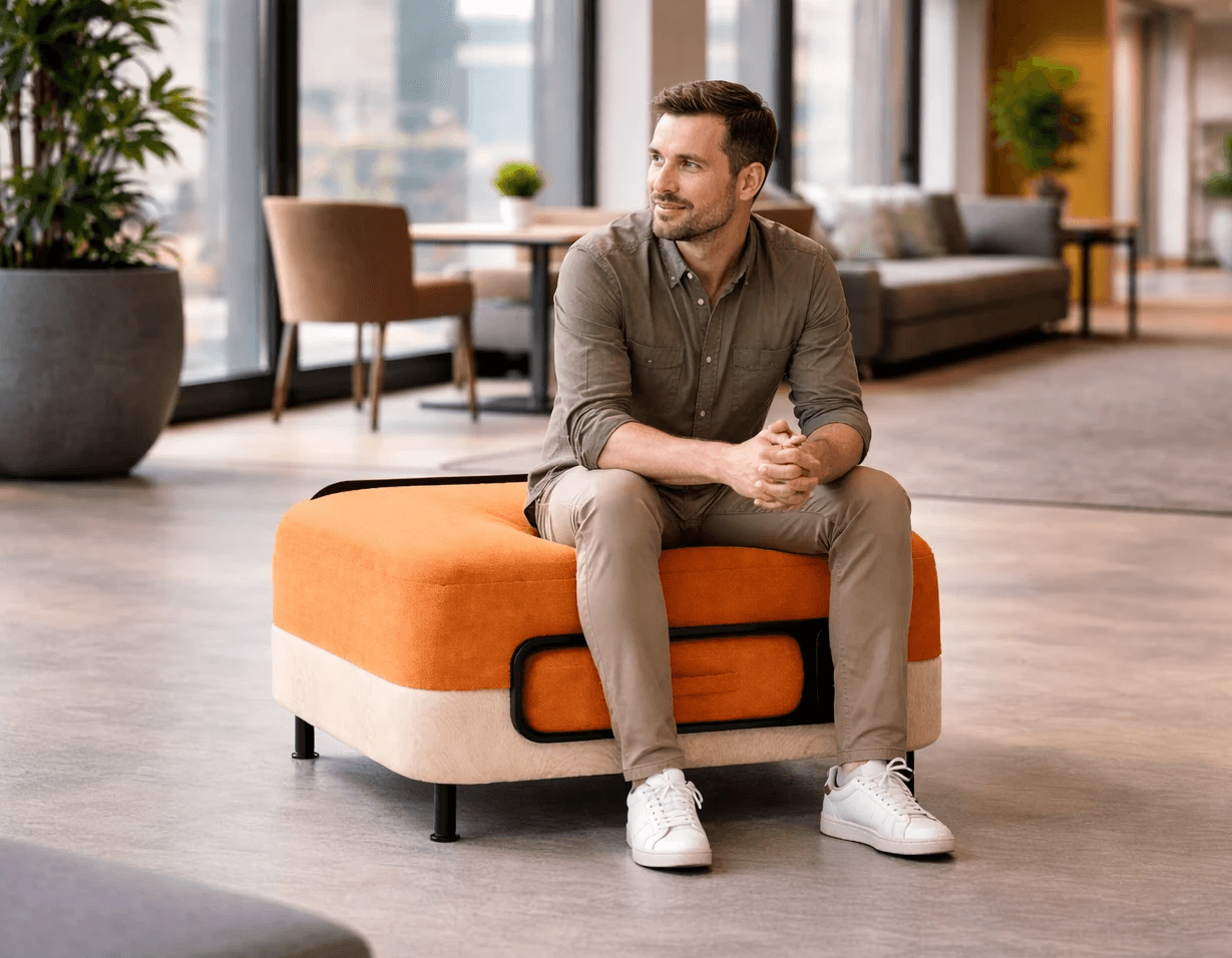 A modular seating system designed to support the dynamic nature of shared workspaces, enabling users to seamlessly shift between focus, collaboration, and relaxation within a single compact unit.